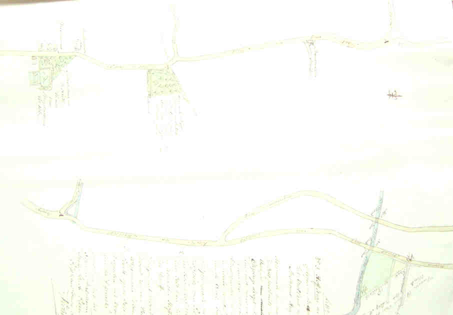 Platte grond van het dorp Brigdamme van ca 1768 . In het midden de Noordweg , op de hoek bij nummer 33 begint de Ooststraat ( Brigdamsepadje ) en heette in die tijd Nieuwehovensepad.