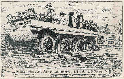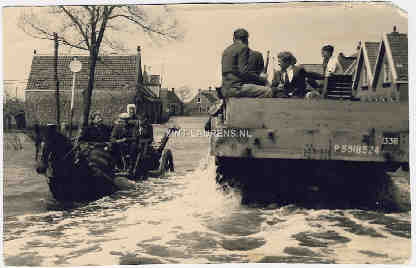 DUKW ( uitgesproken als duck ) vervoermiddel van de amerikaanse troepen, voor op de grond en in het water